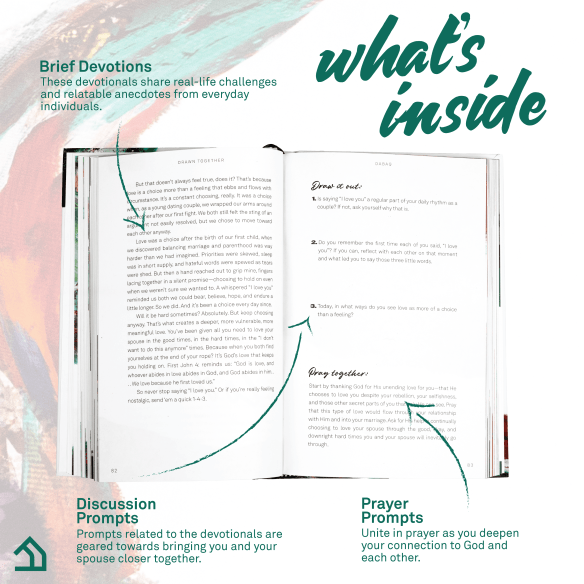 Deepen your relationship with “Drawn Together”, an inspiring couples devotional that incorporates the wisdom and inspiration of the Art of Marriage video series by FamilyLife. In 52 engaging couples devotional readings, you’ll explore six Greek or Hebrew words that reflect God’s character and His blueprint for healthier, more fulfilling marriages. Each devotion is designed to deepen your connection and showcase the Artist’s well-crafted design for your union. Thoughtful discussion questions and prayer prompts throughout this couples devotional enable you and your spouse to approach God together and actively choose ‘us’ on a weekly basis. Experience the flawless methods and pure genius of the Master as He draws you closer together on the canvas of your marriage.