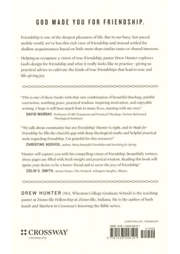 Helping us recapture a vision of true friendship, pastor Drew Hunter explores God’s design for friendship and what it really looks like in practice―giving us practical advice to cultivate the kinds of true friendships that lead to true and life-giving joy.